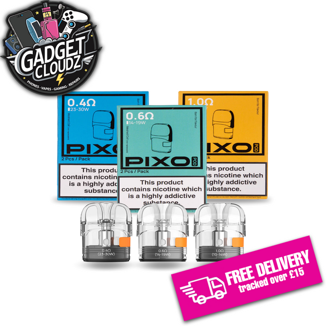 Aspire Pixo pods are available in 0.4Ω, 0.6Ω and 1.0Ω resistances for DTL, RDTL and MTL vaping and incorporate a mesh-constructed coil design.